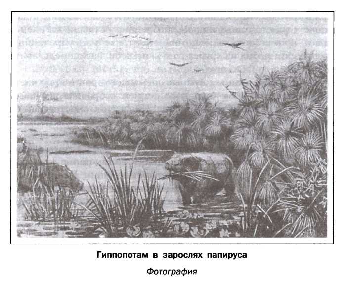 Гиппопотам в зарослях папируса