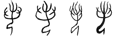 [11] Ввиду абсолютной идентичности пиктограммы иньскому написанию слова эр 而, представлявшему собой изображение свисающей с подбородка бороды (ЦГВЦ, с. 2975), приходится дезавуировать ее общепринятую, но вполне безосновательную трактовку как начальной частицы юй 於. Впрочем, функционально слово эр 於 мало чем отличается от слова юй 於. Это также начальная частица с гипотетическим значением «итак; засим».