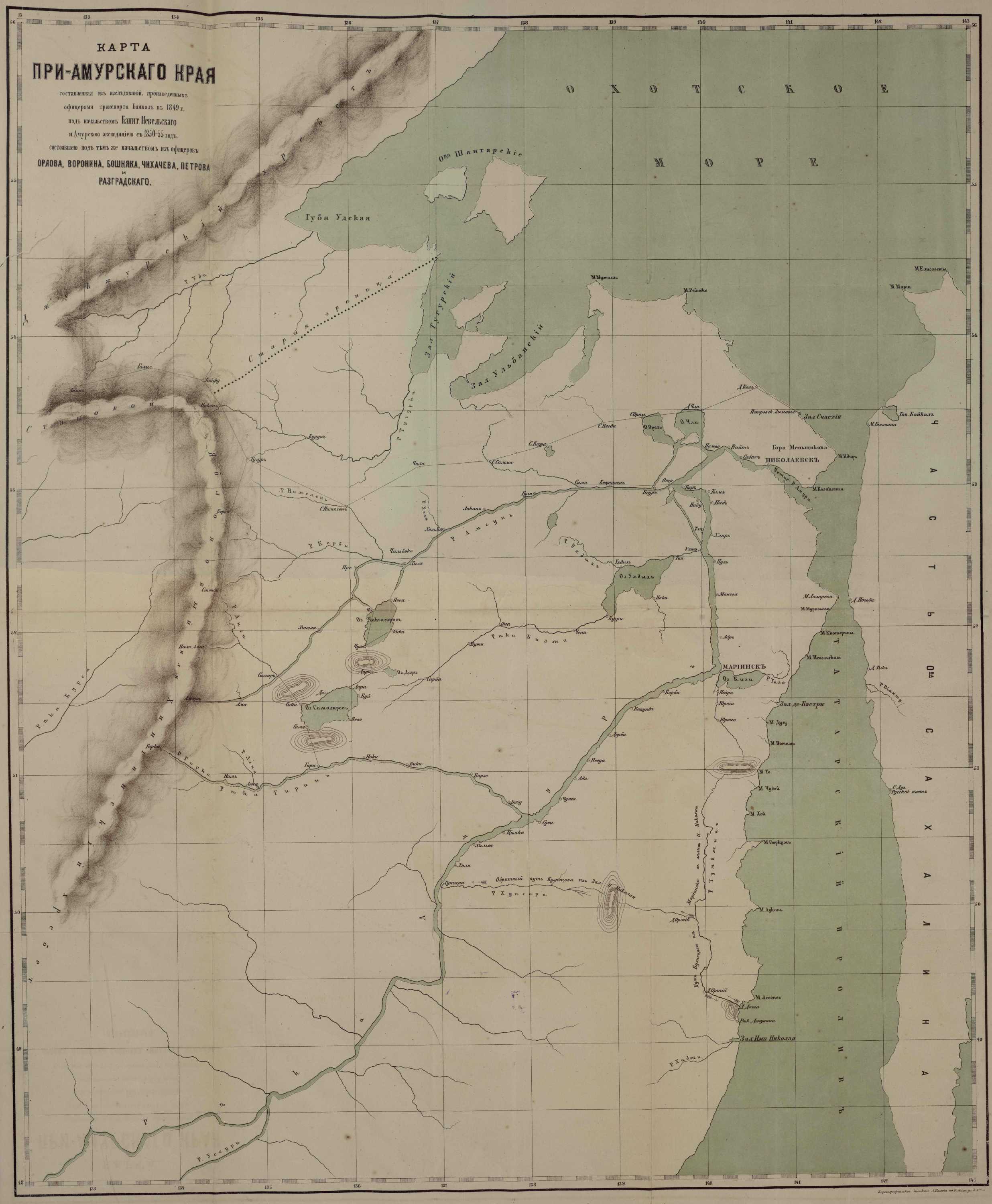 Карта Станового, Яблонового хребтов и бассейна Амура и и Лены