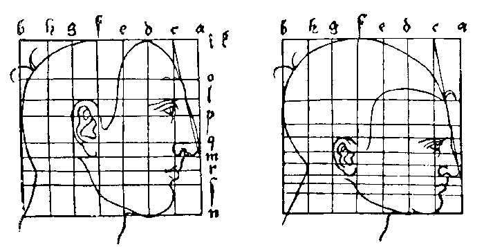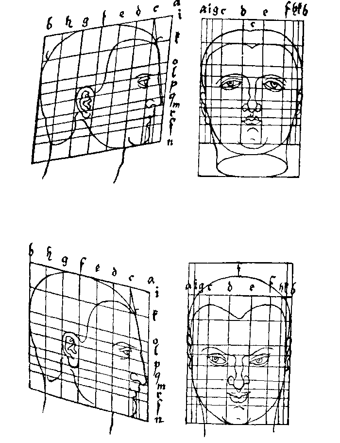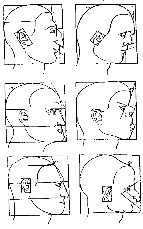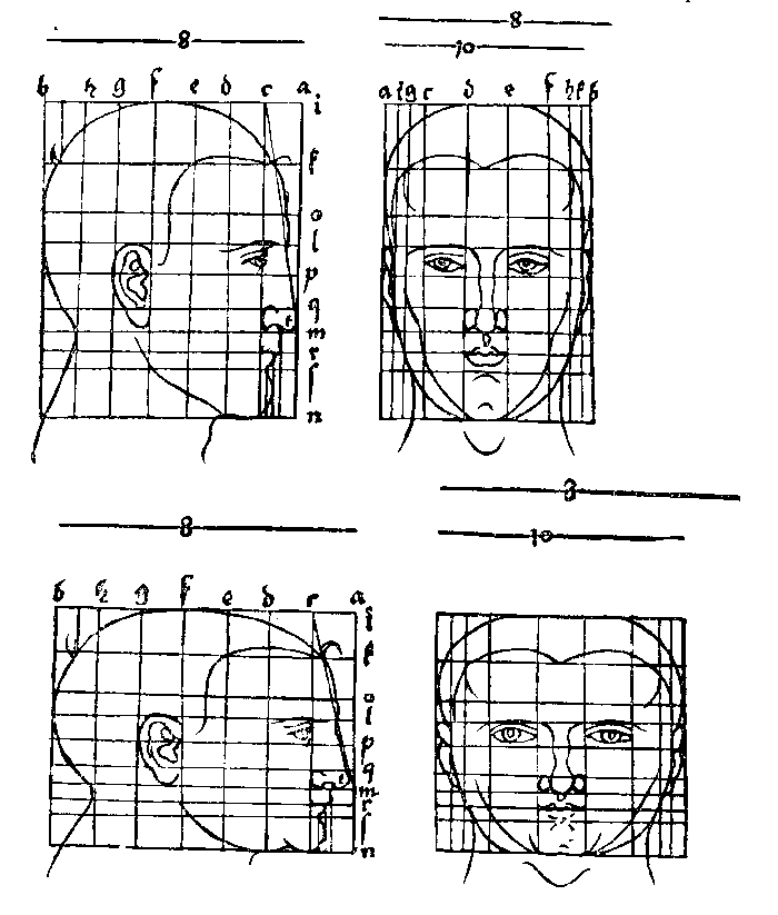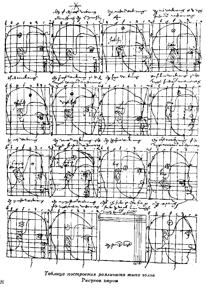 102. Таблица построения различного типа голов. Рисунок пером. Дрезден, Публичная библиотека .