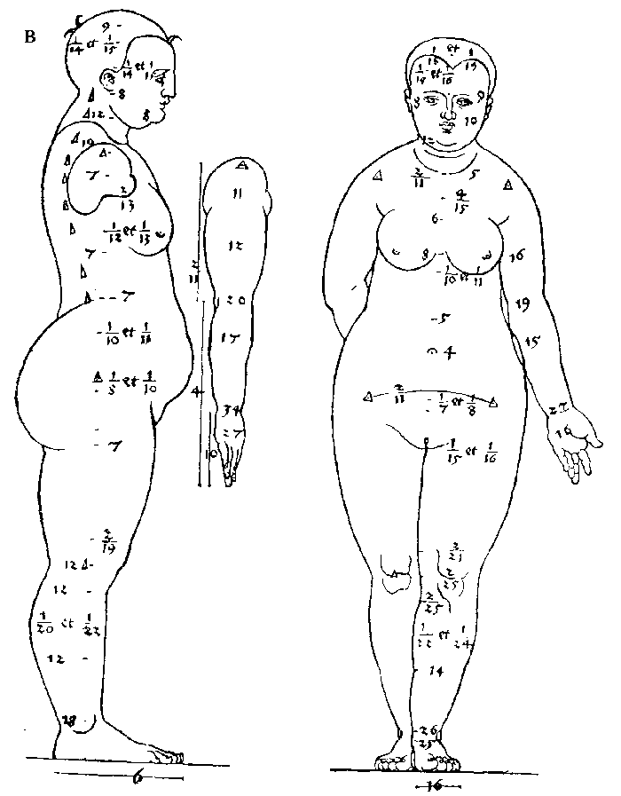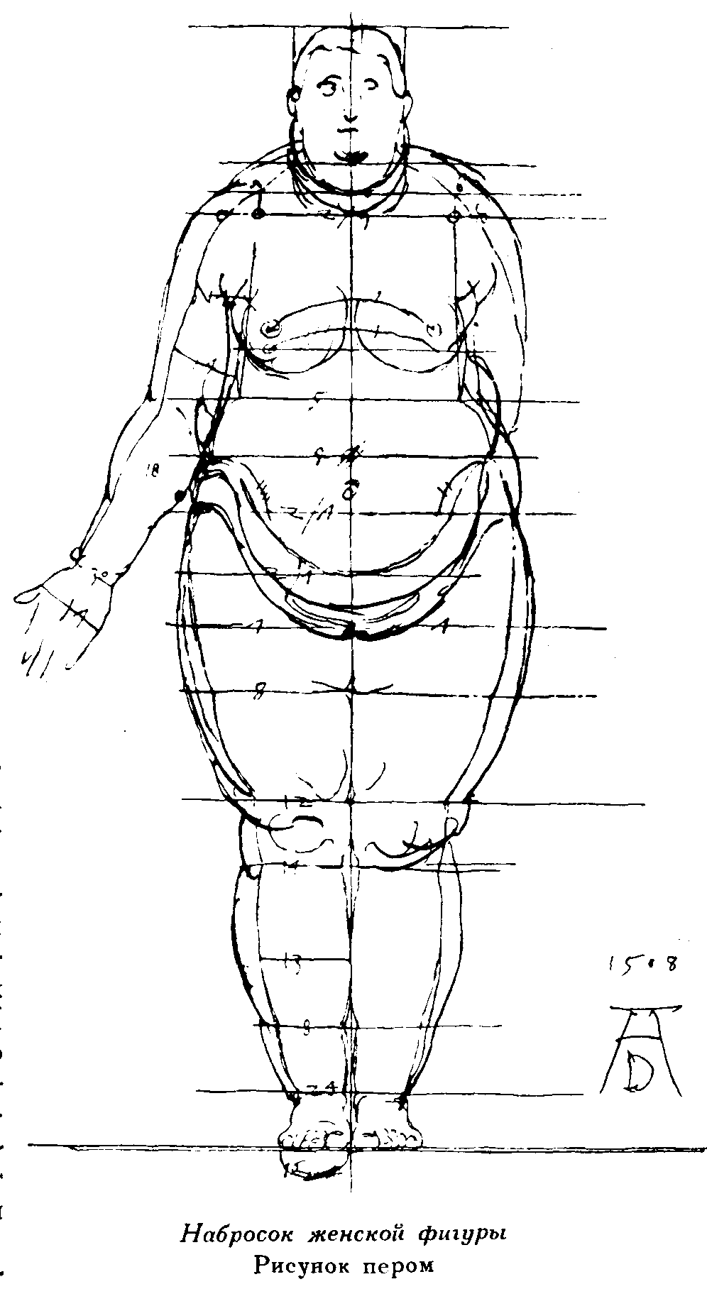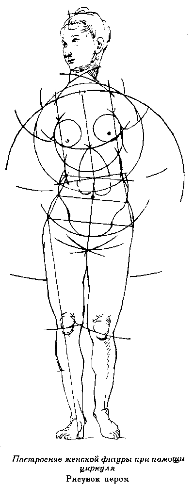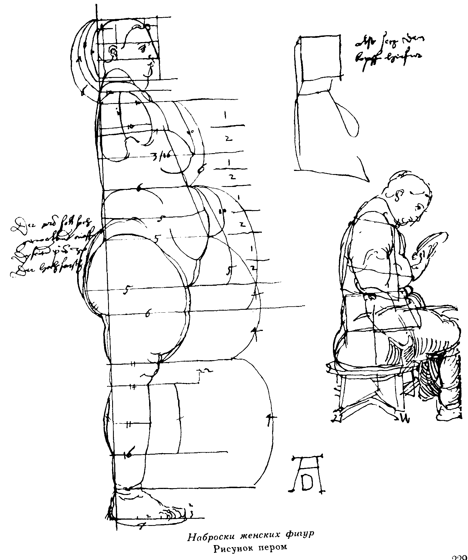 6. Построение женской фигуры при помощи циркуля. Рисунок пером. Дрезден, Публичная библиотека.