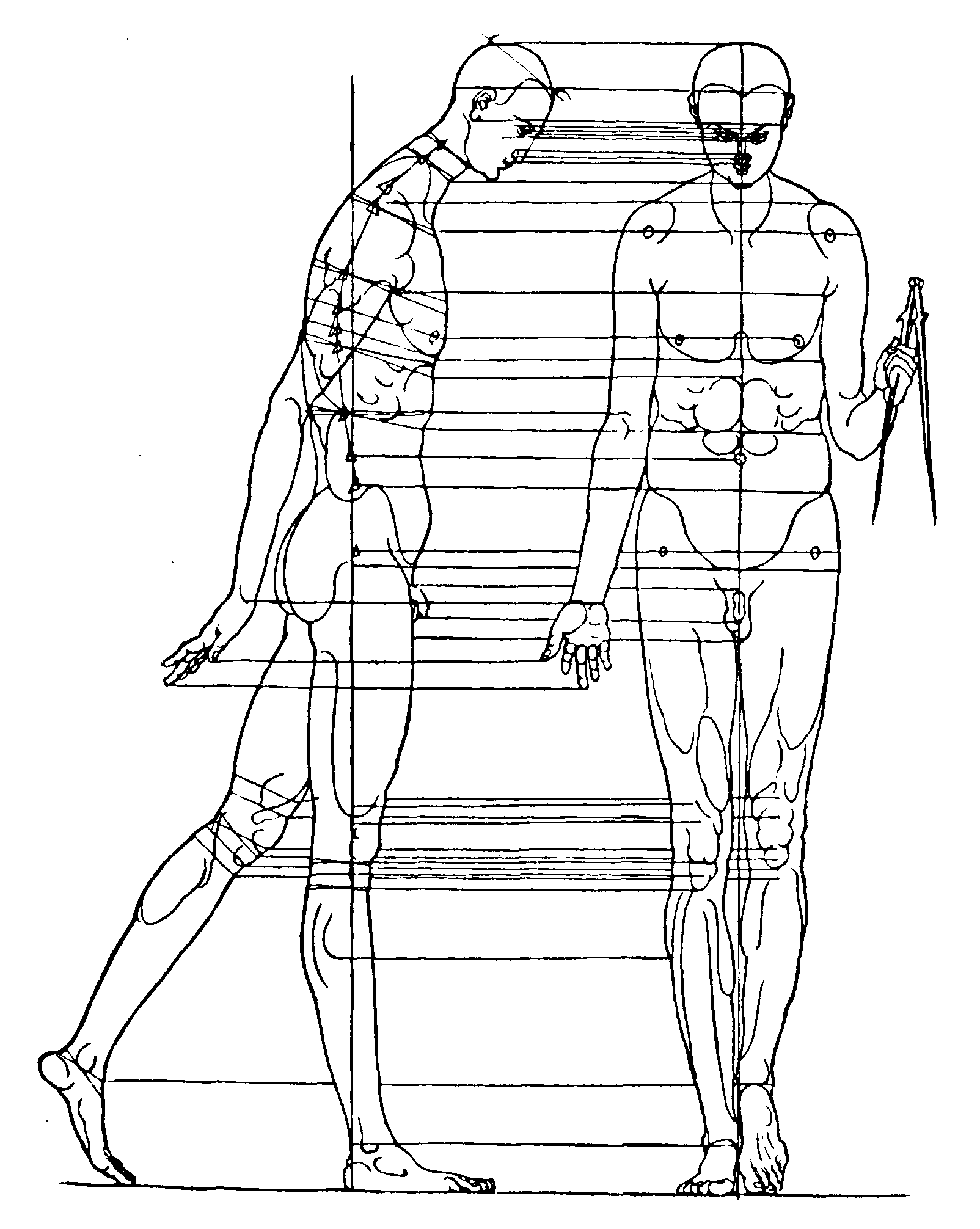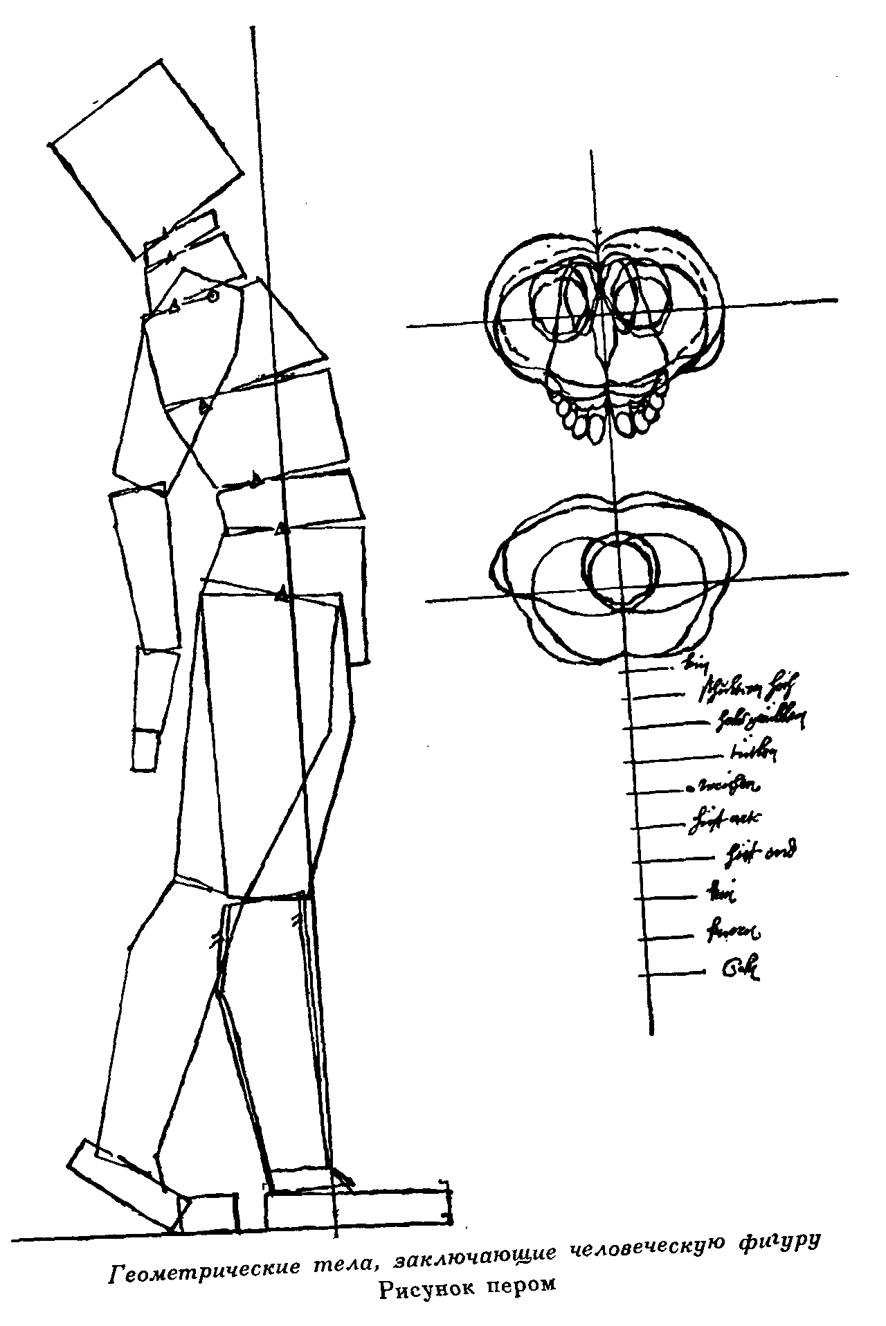105. Геометрические тела, заключающие человеческую фигуру. Рисунок пером. Дрезден, Публичная библиотека.