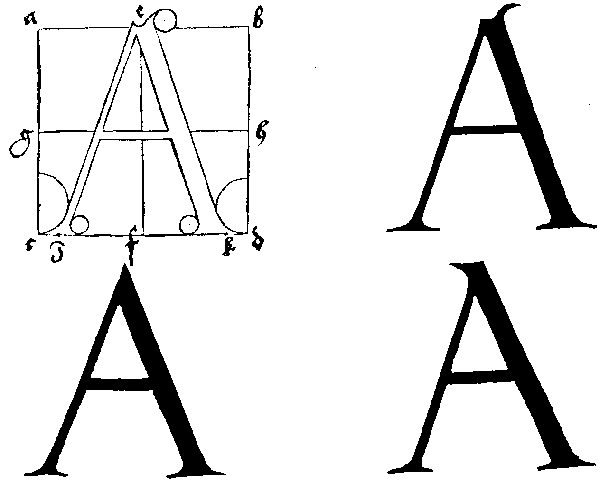 36. Построение буквы А латинского шрифта.