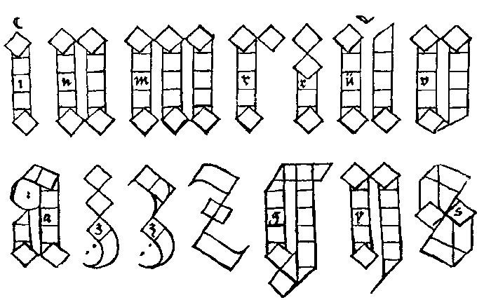 38. Построение букв готического шрифта.