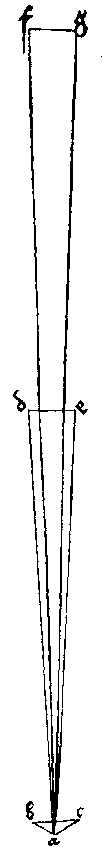 42. Чертеж, показывающий зависимость кажущегося изменения величины предмета от расстояния предмета от глаза.