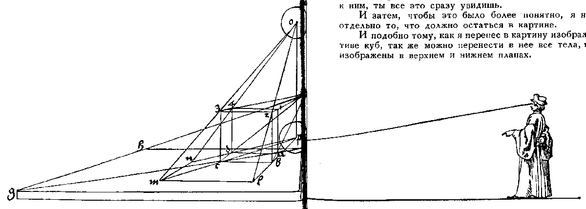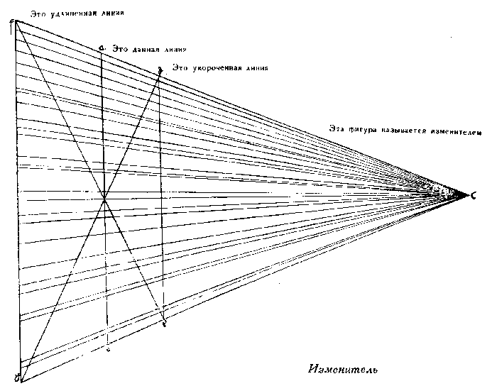 43. Чертеж, показывающий кажущееся изменение формы и величины предметов в перспективе.