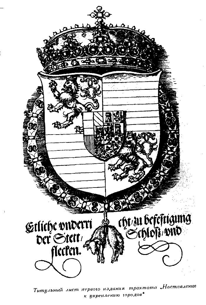 52. Титульный лист первого издания трактата "Наставление к укреплению городов". Издание 1527 года.