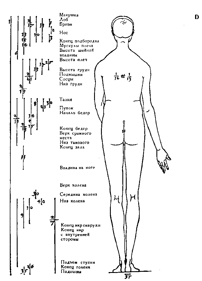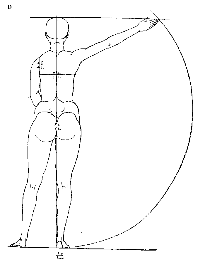 65. Мужская фигура высотою в десять голов. Вид сзади.