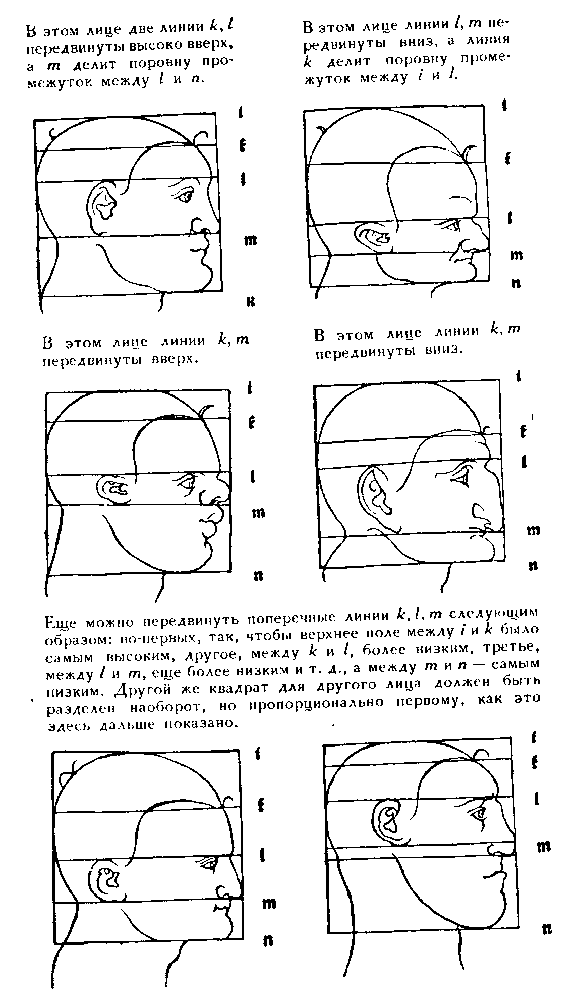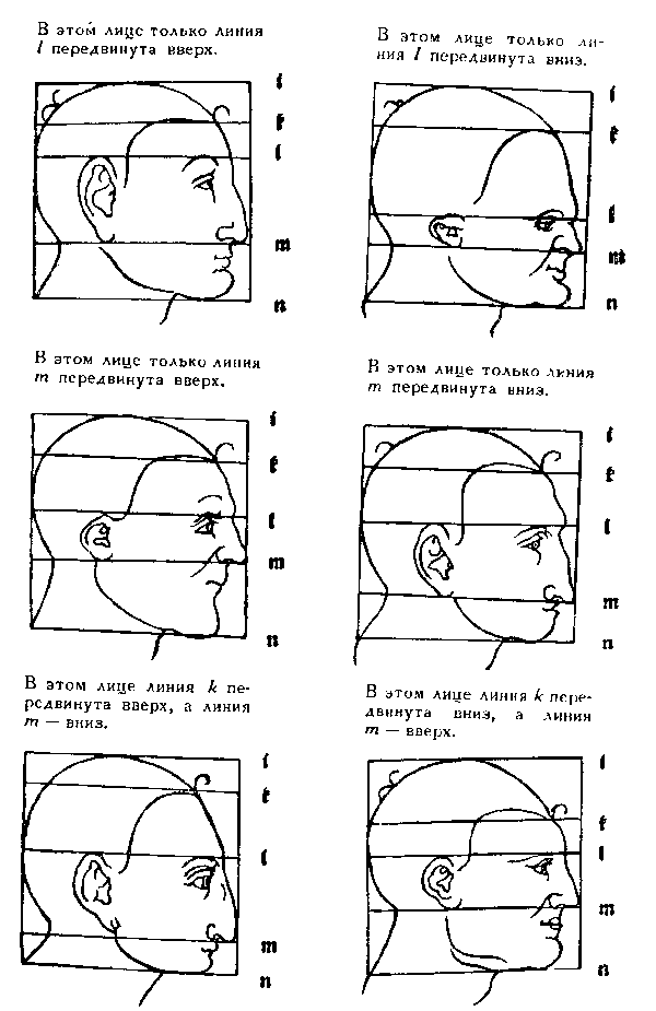 82b. Таблица искажения пропорций головы путем перемещения горизонтальных линий. (Продолжение).