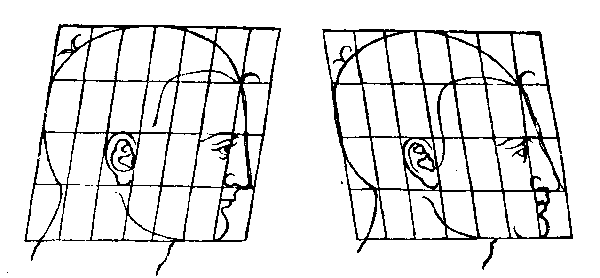 87. Искажение пропорций головы путем перемещения вертикальных линий.