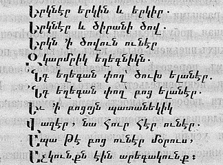Не входя в рассмотрение — отсутствие ли Армянских письмен, постоянные ли войны, или что-либо другое было причиной этой всеобщей нелюбознательности и умственного бездействия, мы должны однако ж сознаться, что литература Армян ведет свое начало от времени изобретения Армянского алфавита.