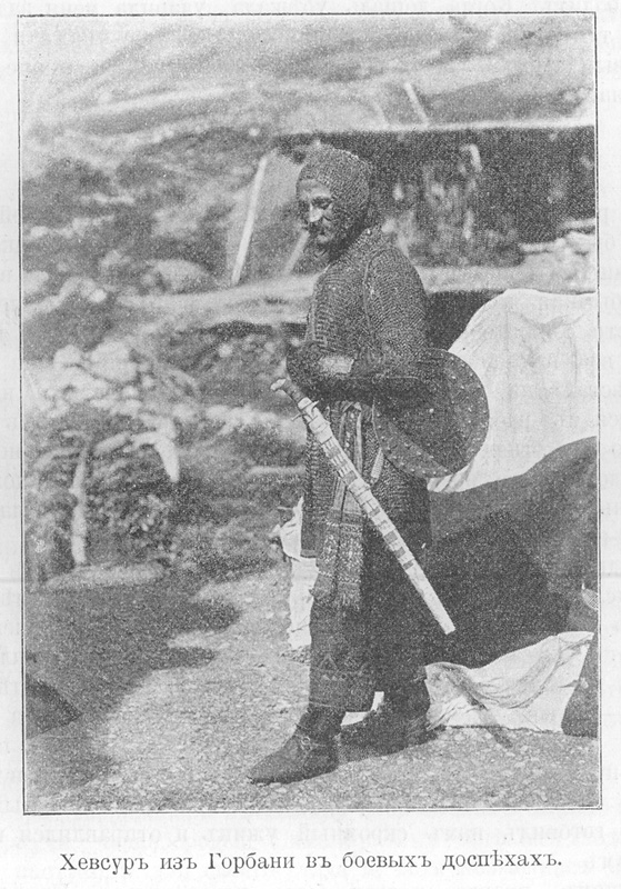 Хевсуры из Горбани в боевых доспехах. (202 кб).