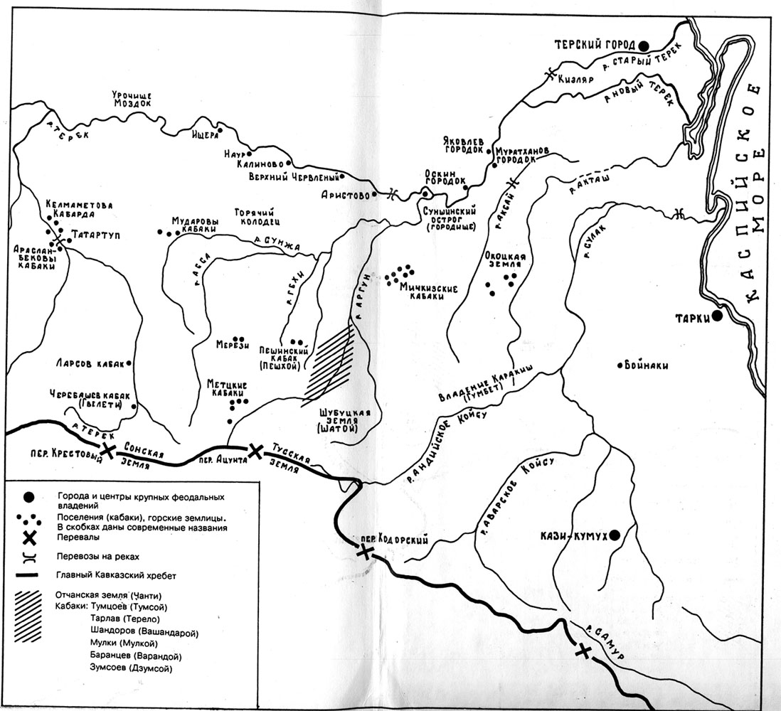 Селения (кабаки) и землицы части Северо-Восточного Кавказа в XVII в. Сост. Н. Г. Волковой. Худ. Г. В. Воронова