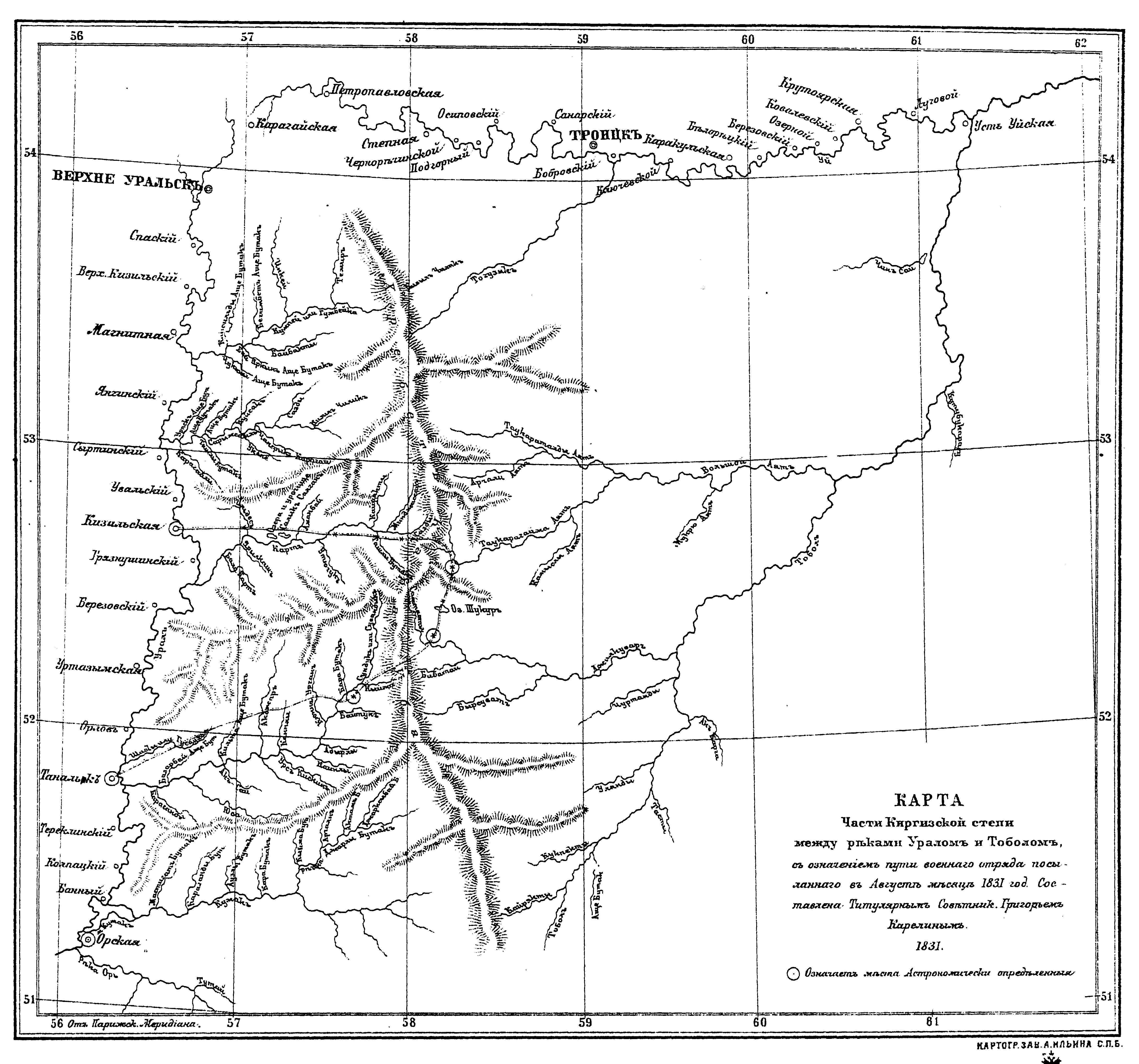 Карта части Киргизской степи.