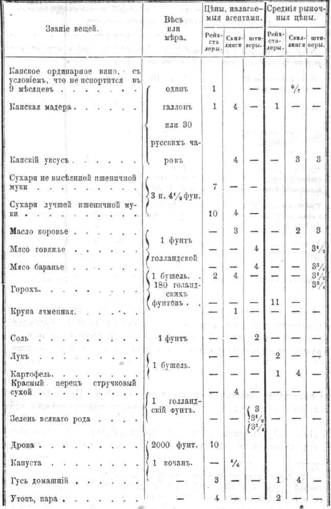 Произведения колонии, нужные мореплавателям; обманы, употребляемые купцами при снабжении судов; средства с выгодою запасаться всем нужным, не имея помощи в агентах, и цены съестных припасов и вещей.