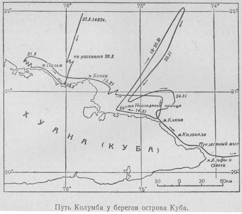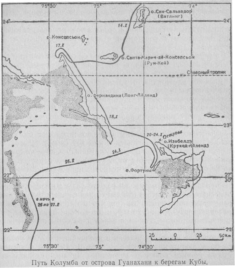 Путь Колумба от острова Гуахани к берегам Кубы. (104 кб.)