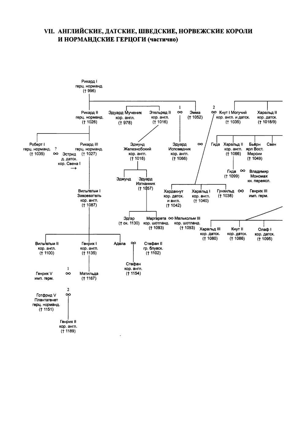 Таблица VII. Английские, датские, шведские, норвежские короли и нормандские герцоги. Часть 1, Часть 2.