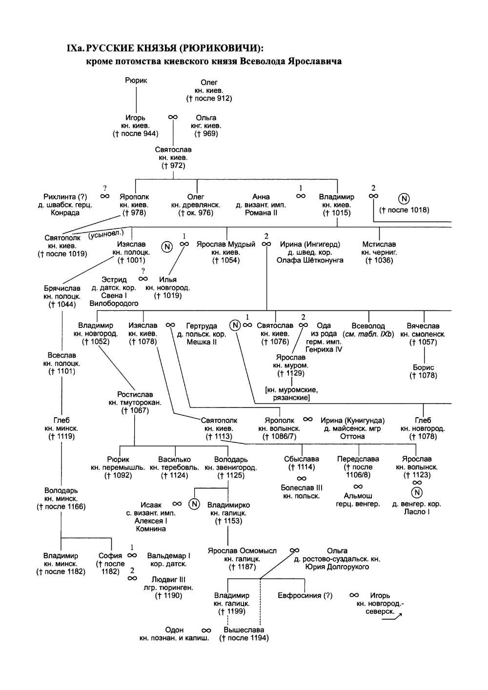 Таблица IXа. Русские князья, кроме Ярославичей. Часть 1, Часть 2.