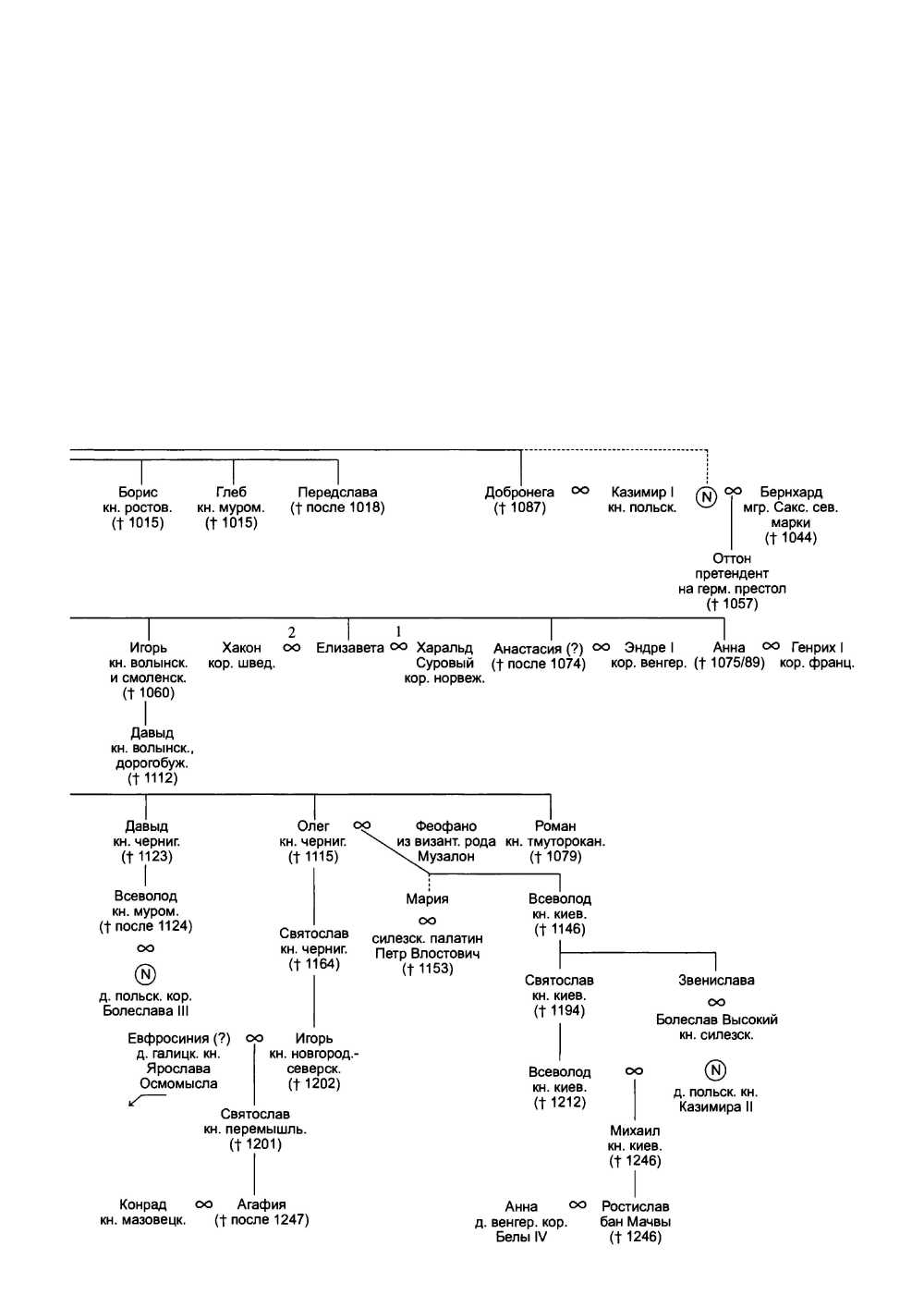 Таблицы призваны облегчить читателю ориентацию в том обширном просопографическом материале, который содержится в томе, по возможности суммировав его и представив в систематическом виде взаимоувязанных родословий. Это потребовало, естественно, включения целого ряда имен, в текстах и комментариях не упоминающихся, но без которых генеалогия утратила бы связность. Кроме того, составитель позволил себе пополнить таблицы также изрядным количеством лиц, династически связанных с древнерусским княжеским домом, хотя в тексте эти связи и не обсуждаются. Поэтому таблицы представляют собой не только вспомогательную часть тома, но и несут самостоятельную, отдельную информацию. Вместе с тем, от приведенных генеалогий, разумеется, никоим образом не следует ждать исчерпывающей полноты. За их пределами остались имена многих исторически более или менее важных персонажей, если их присутствие не диктовалось названными выше потребностями; исключение составляют некоторые общеизвестные имена, которые дают читателю возможность привязать родословие к исторически маркирующим фигурам — Карлу Великому, Александру Невскому, Пржемыслу-Отакару I и т. п. В результате родословия страдают порой досадной, но неизбежной избирательностью, предъявляя имена незначительные (коль скоро они фигурируют в тексте) и опуская исторически куда более весомые (но в тексте не встречающиеся). Читателю придется смириться с этим, как смирился составитель.