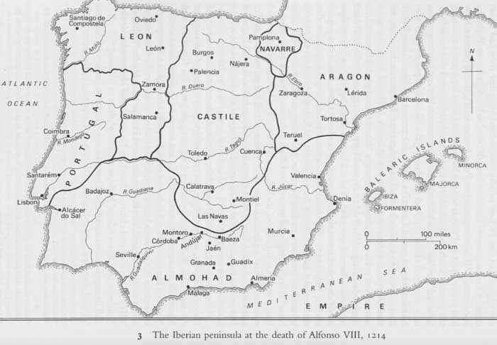Иберийский полуостров в 1214 г. (43 кб). Источник: S. Barton. The aristokracy in twelfth - century Leon and Castile. 1997