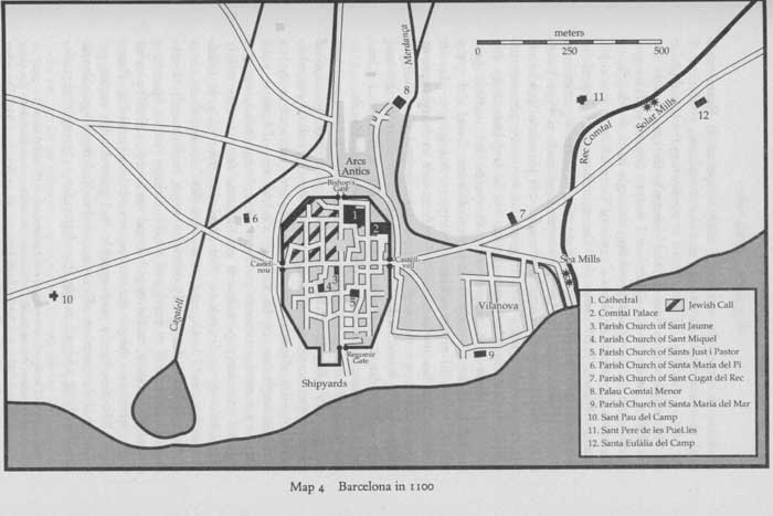 Барселона в 1100 г. (40 кб). Источник: S. Bench. Barcelona and its rulers 1096 - 1291. 1994