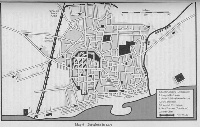 Барселона в 1290 г. (50 кб). Источник: S. Bench. Barcelona and its rulers 1096 - 1291. 1994