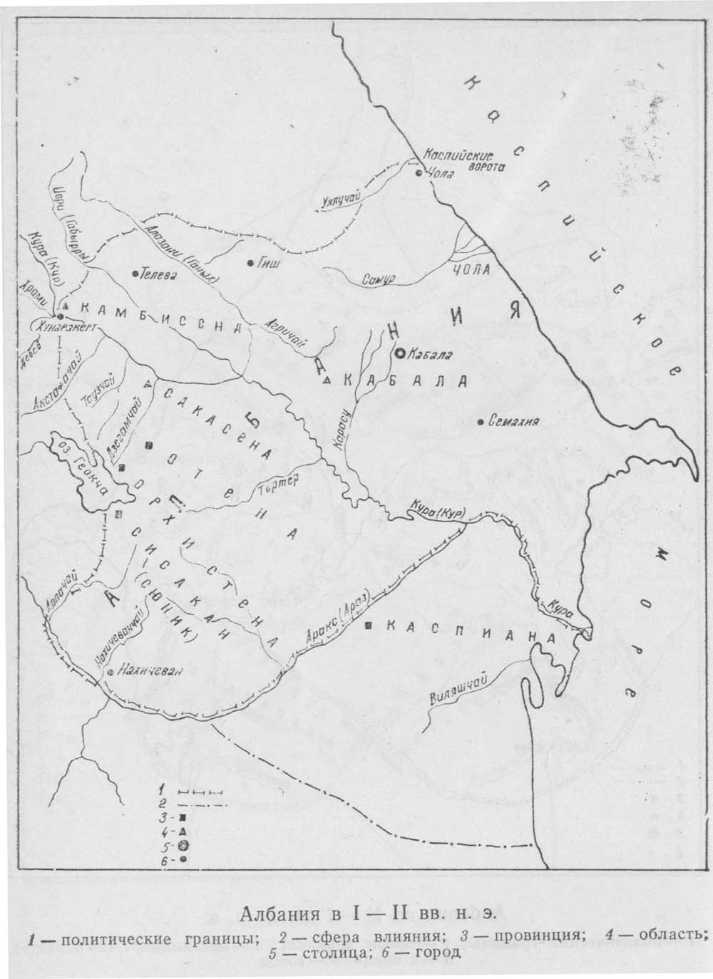 Албания в I - II вв. н.э. (92 кб). Источник: Историческая география Азербайджана Баку. 1987