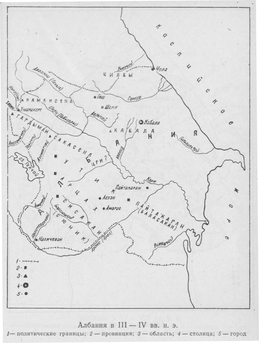 Албания в III - IV вв. н.э. (92 кб). Источник: Историческая география Азербайджана Баку. 1987