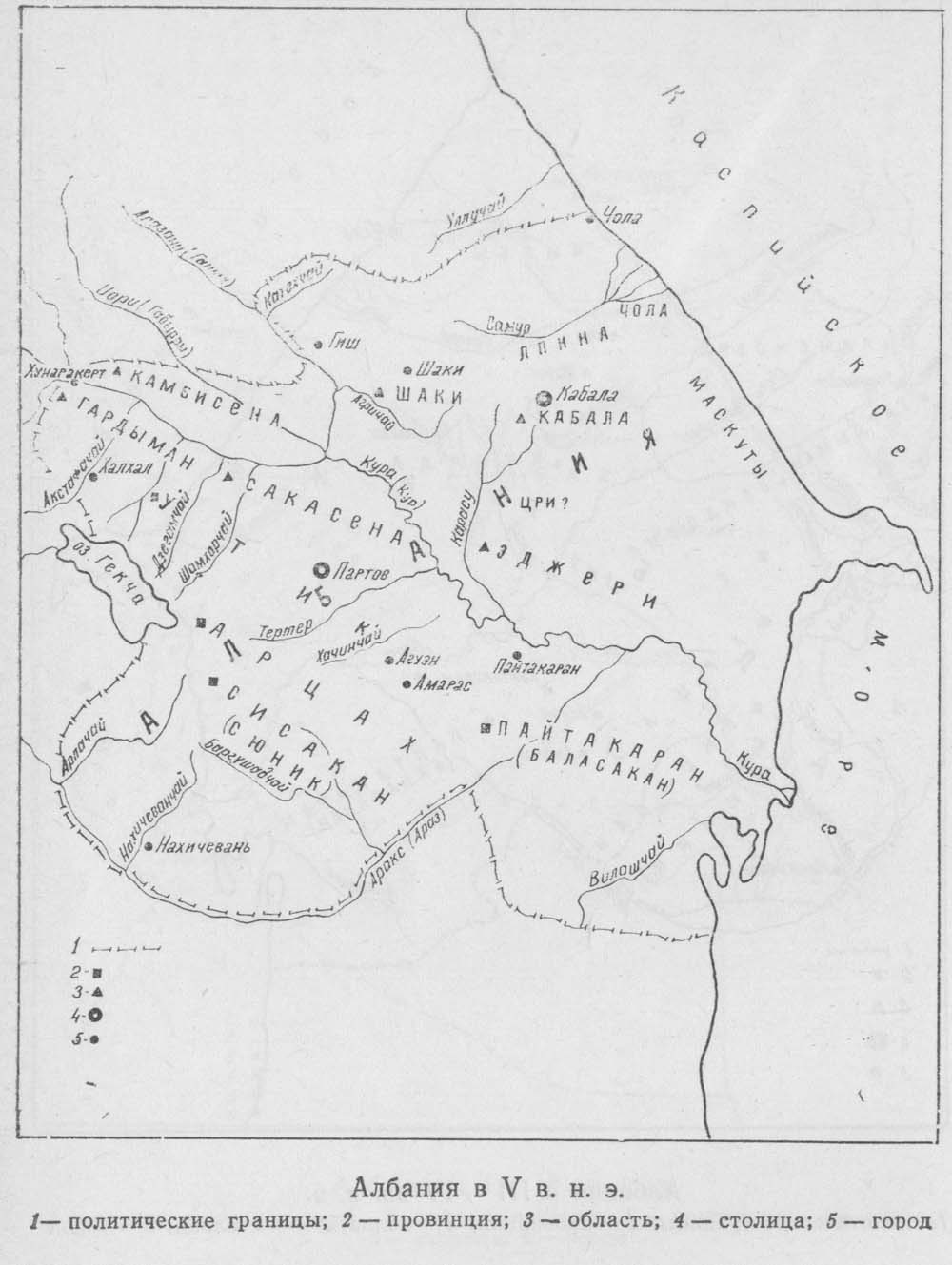 Албания в V вв. н.э. (92 кб). Источник: Историческая география Азербайджана Баку. 1987