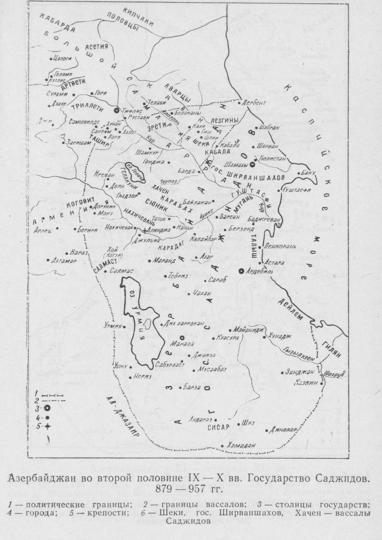 Азербайджан во второй половине IX - X вв. (164 кб). Источник: Историческая география Азербайджана Баку. 1987