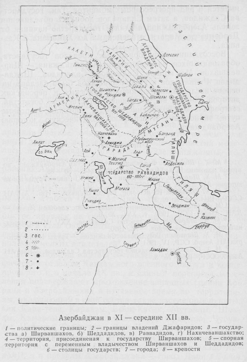 Азербайджан в XI - середине XII вв. (124 кб). Источник: Историческая география Азербайджана Баку. 1987