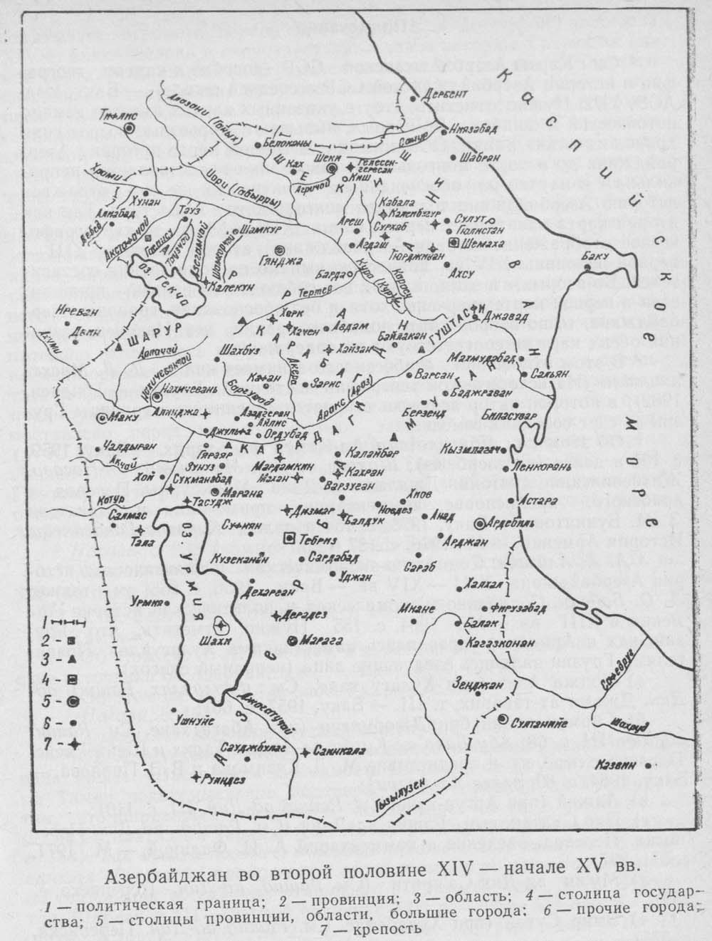 Азербайджан во второй половине XIV - начале XV вв. (129 кб). Источник: Историческая география Азербайджана Баку. 1987
