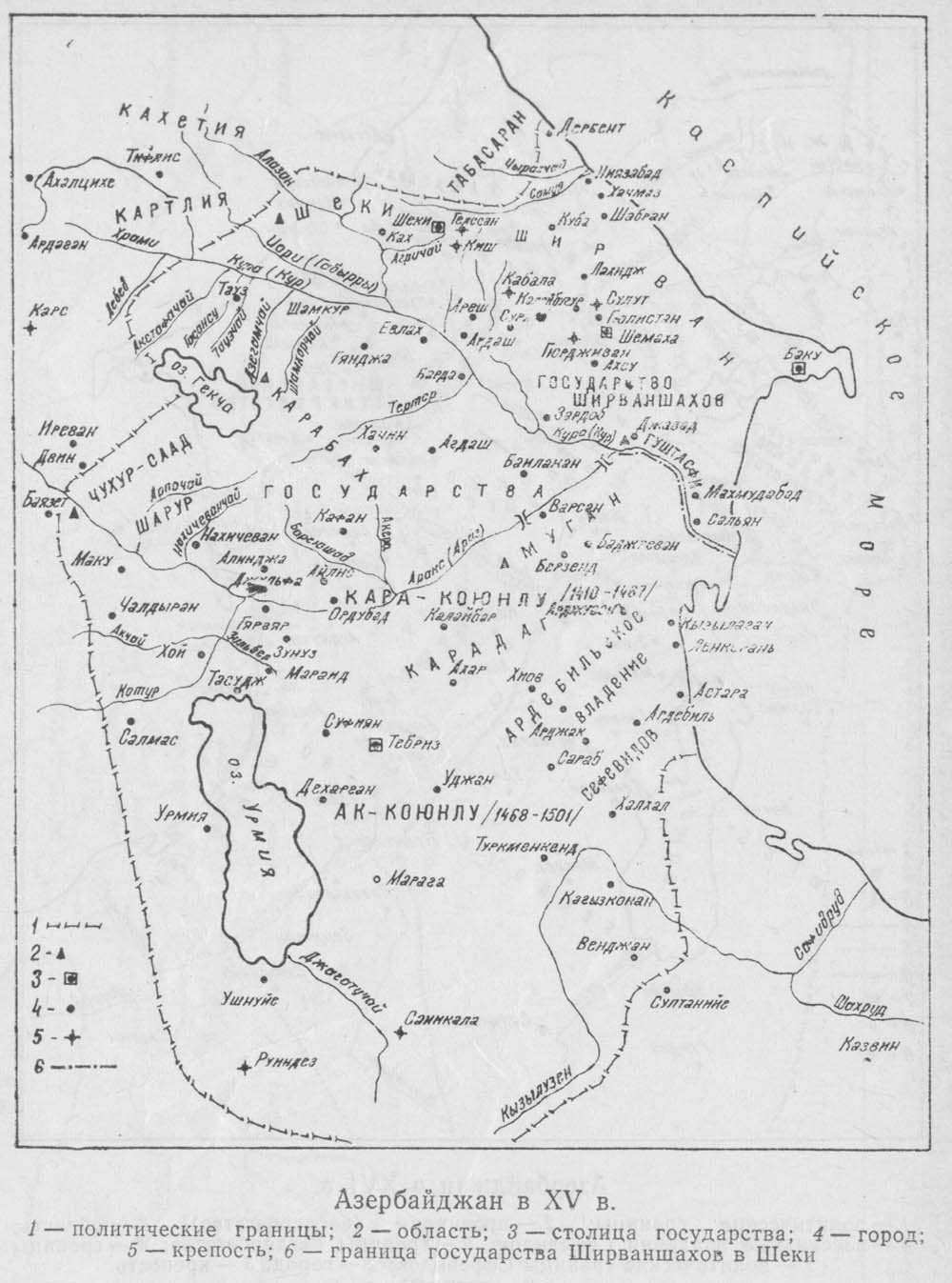 Азербайджан в XV в. (128 кб). Источник: Историческая география Азербайджана Баку. 1987