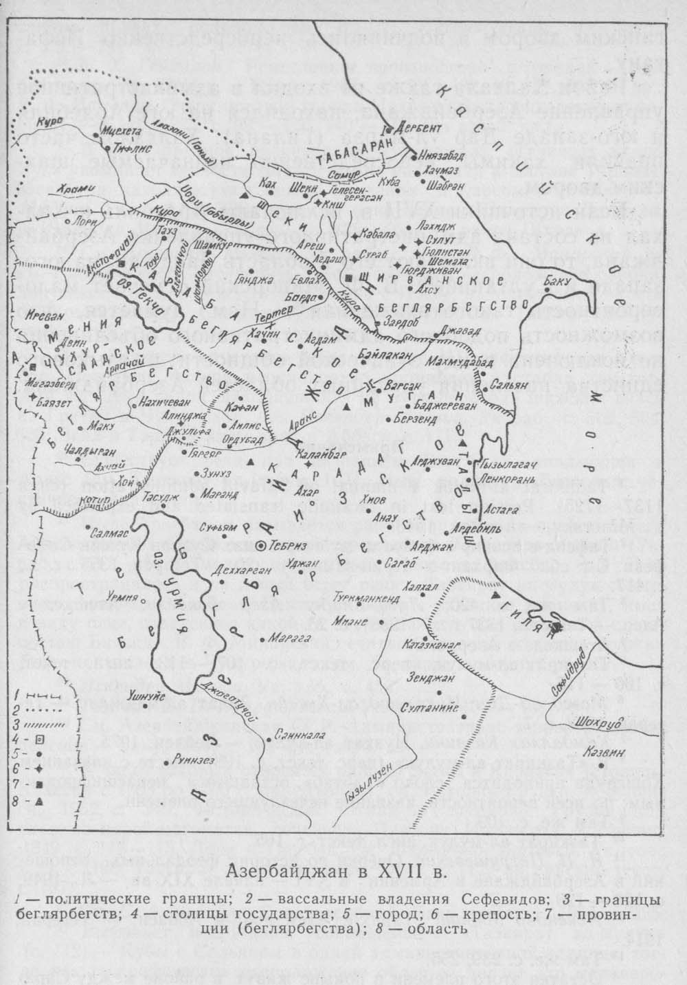 Азербайджан в XVII в. (136 кб). Источник: Историческая география Азербайджана Баку. 1987