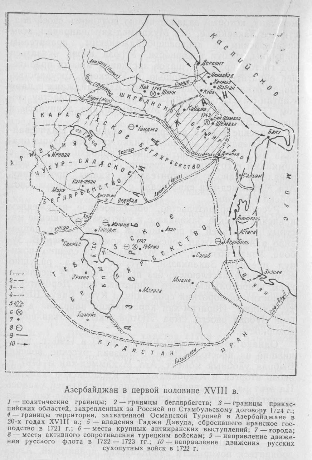 Азербайджан в первой половине XVIII в. (156 кб). Источник: Историческая география Азербайджана Баку. 1987