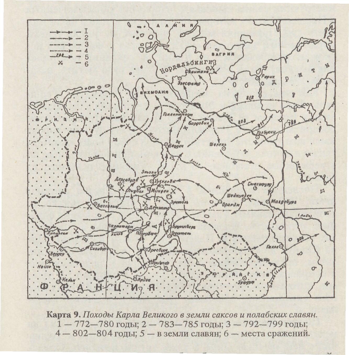 Походы Карла Великого в земли саксов и славян. (231 кб). Источник: Левандовский А. П. Карл Великий. (Любезно предоставлена Дьяконовым И. В.)
