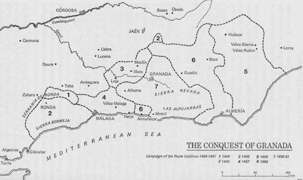 Завоевание Гранады 1484 - 1491 гг. (50 кб). Источник: Jan Read. The Moors in Spain and Portugal. 1974