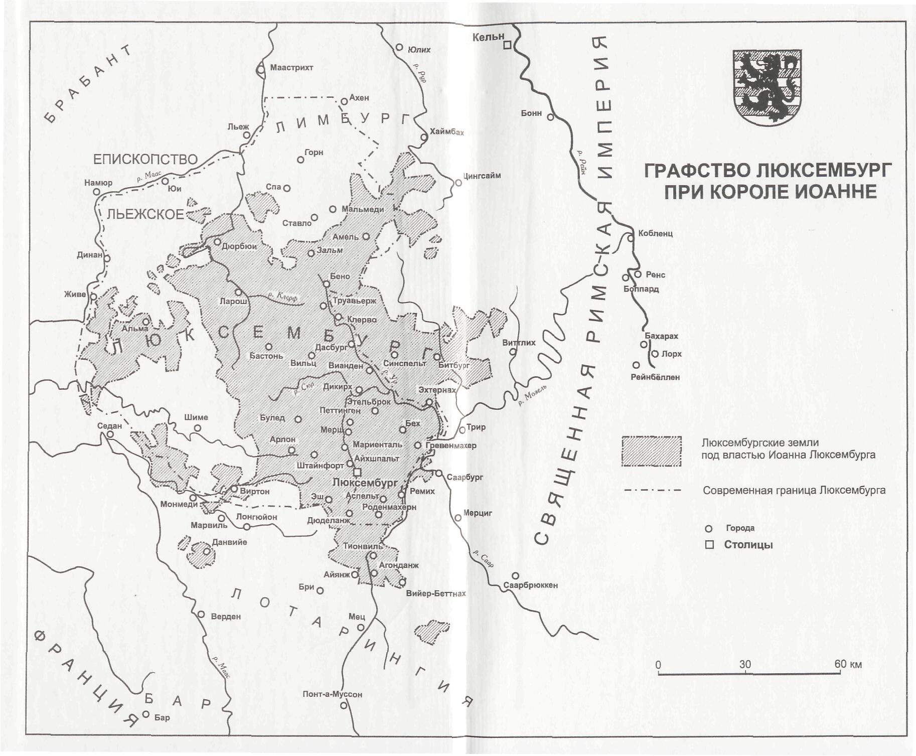 Графство Люксембург при короле Иоанне. (302 кб). Источник: Раймон Казель, Иоанн Слепой. Граф Люксембурга, король Чехии, СПб. Евразия, 2004. (Любезно предоставлена Дьяконовым И. В.)