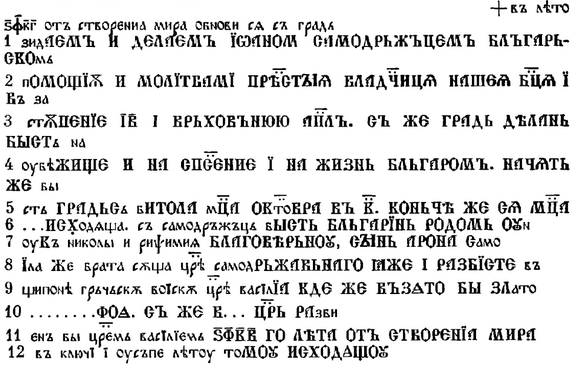 т. е. 6522 или 1014 г. н. э. — дата поражения болгарских войск Самуила в ущелье Ключ. На последней строке Мошин восстанавливает точную дату —