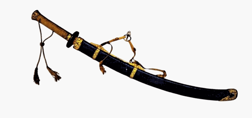 Подвеска клинкового оружия к поясу рукоятью назад является характерной особенностью всех цинских изображений и отражает реальный способ ношения оружия в те годы. Это обусловлено тем фактом, что лук являлся основным оружием всадника и общая система подвески оружия должна была в первую очередь обеспечить беспрепятственное использование лука. Портреты военачальников и офицеров демонстрируют нам как подвеску сабли рукоятью назад, так и рукоятью вперед, как под налучем, так и снаружи его. В последнем случае ремни поясной портупеи пропускались через кольцо на налуче. Видимо, разница в способе ношения клинкового оружия объяснялась личными предпочтениями каждого воина. Темляк сабли изготовлен из синего шелкового шнура.