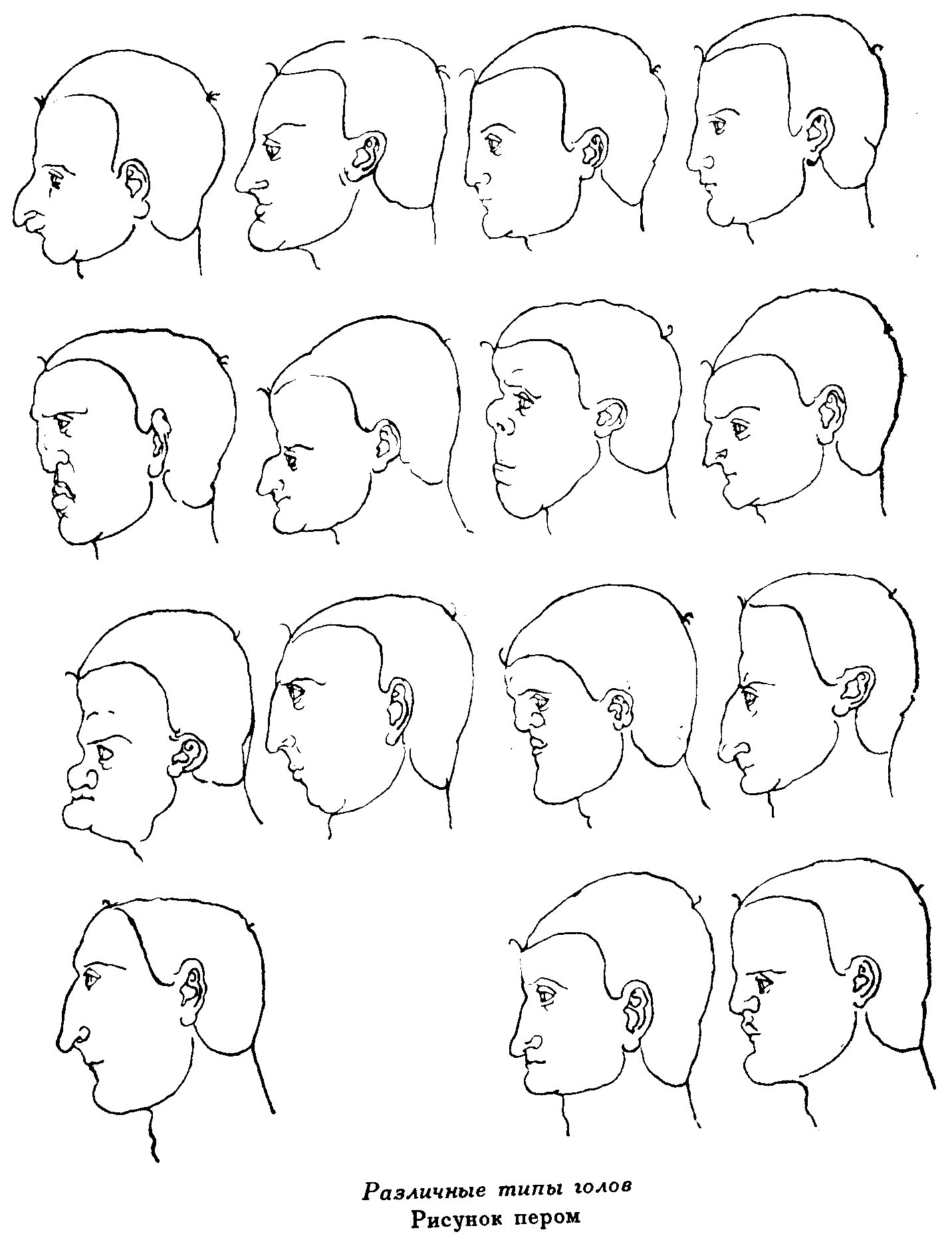 103. Различные типы голов. Рисунок пером на обороте предыдущей таблицы.