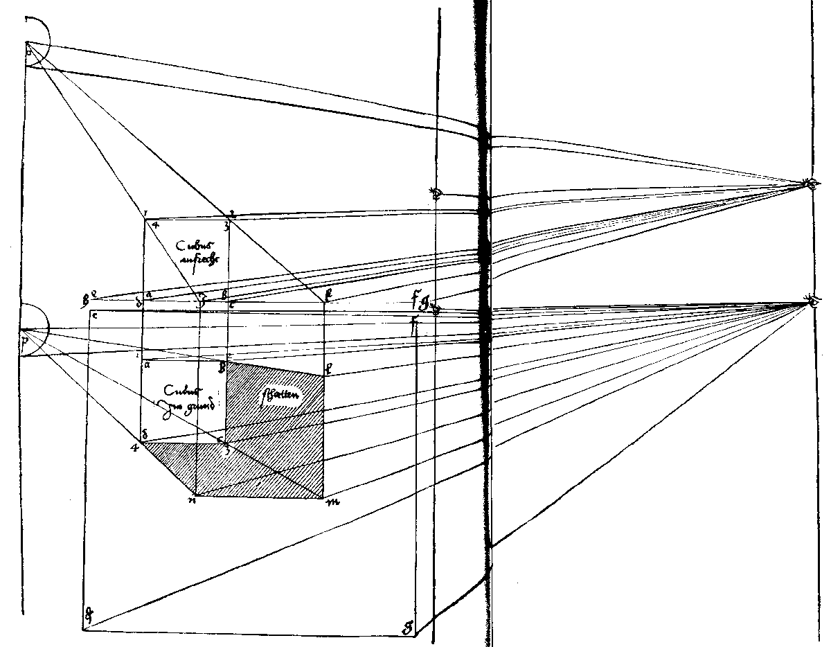 45. Построение куба и его тени в перспективе.