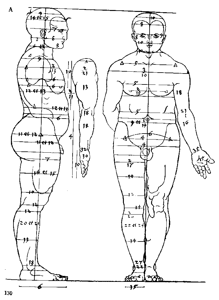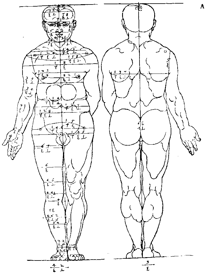58. Фигура плотного мужчины высотою в семь голов. Вид спереди.