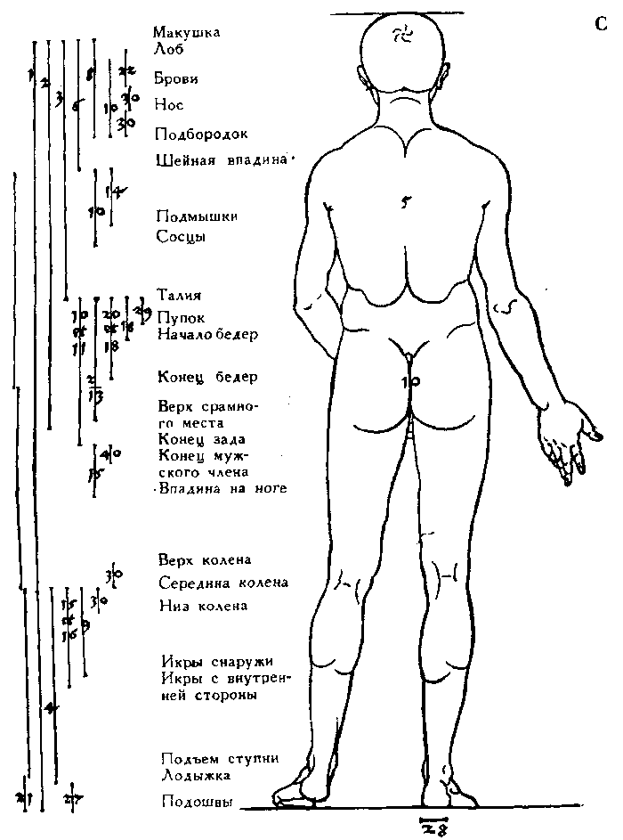 65. Мужская фигура высотою в десять голов. Вид сзади.
