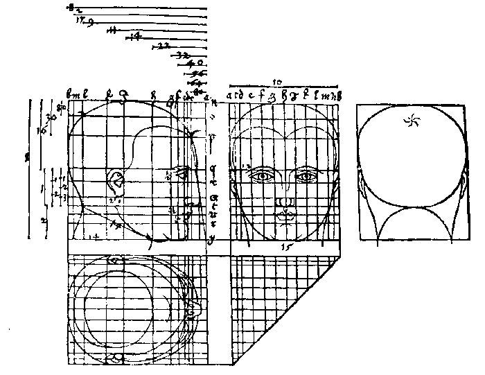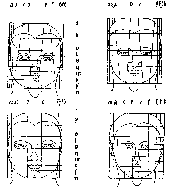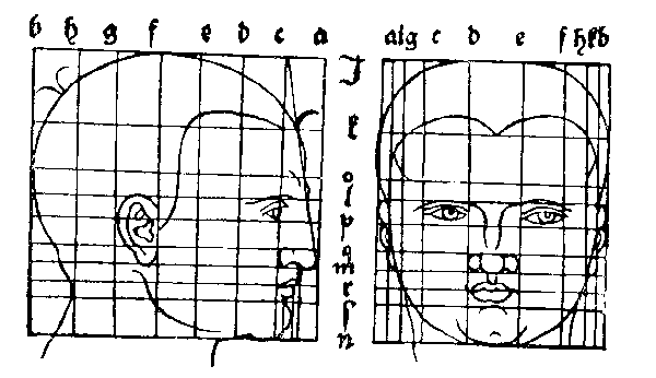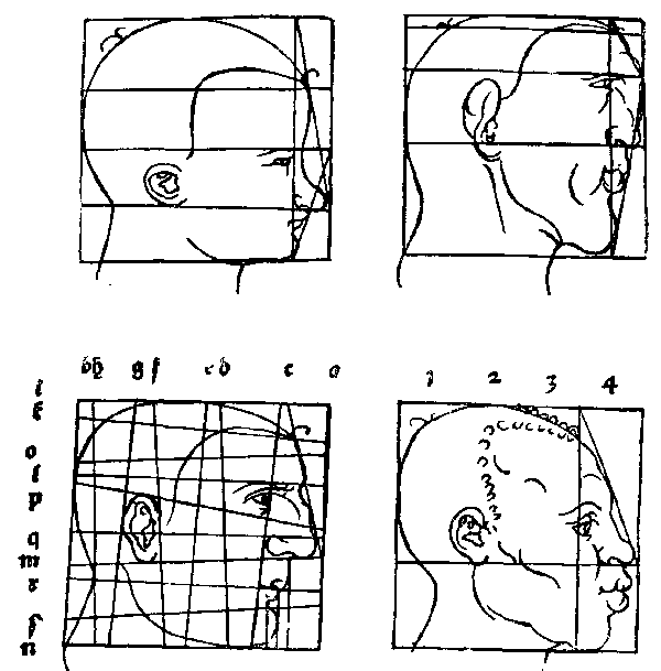 102. Таблица построения различного типа голов. Рисунок пером. Дрезден, Публичная библиотека .
