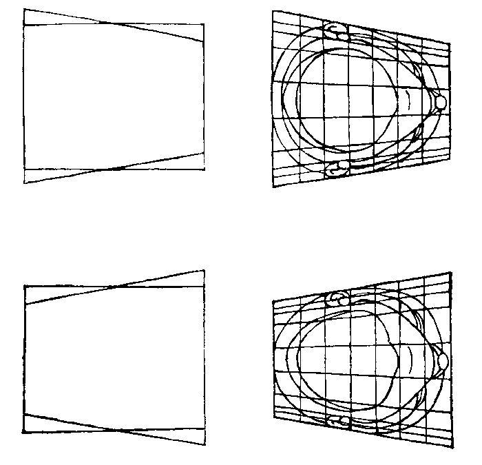 82b. Таблица искажения пропорций головы путем перемещения горизонтальных линий. (Продолжение).