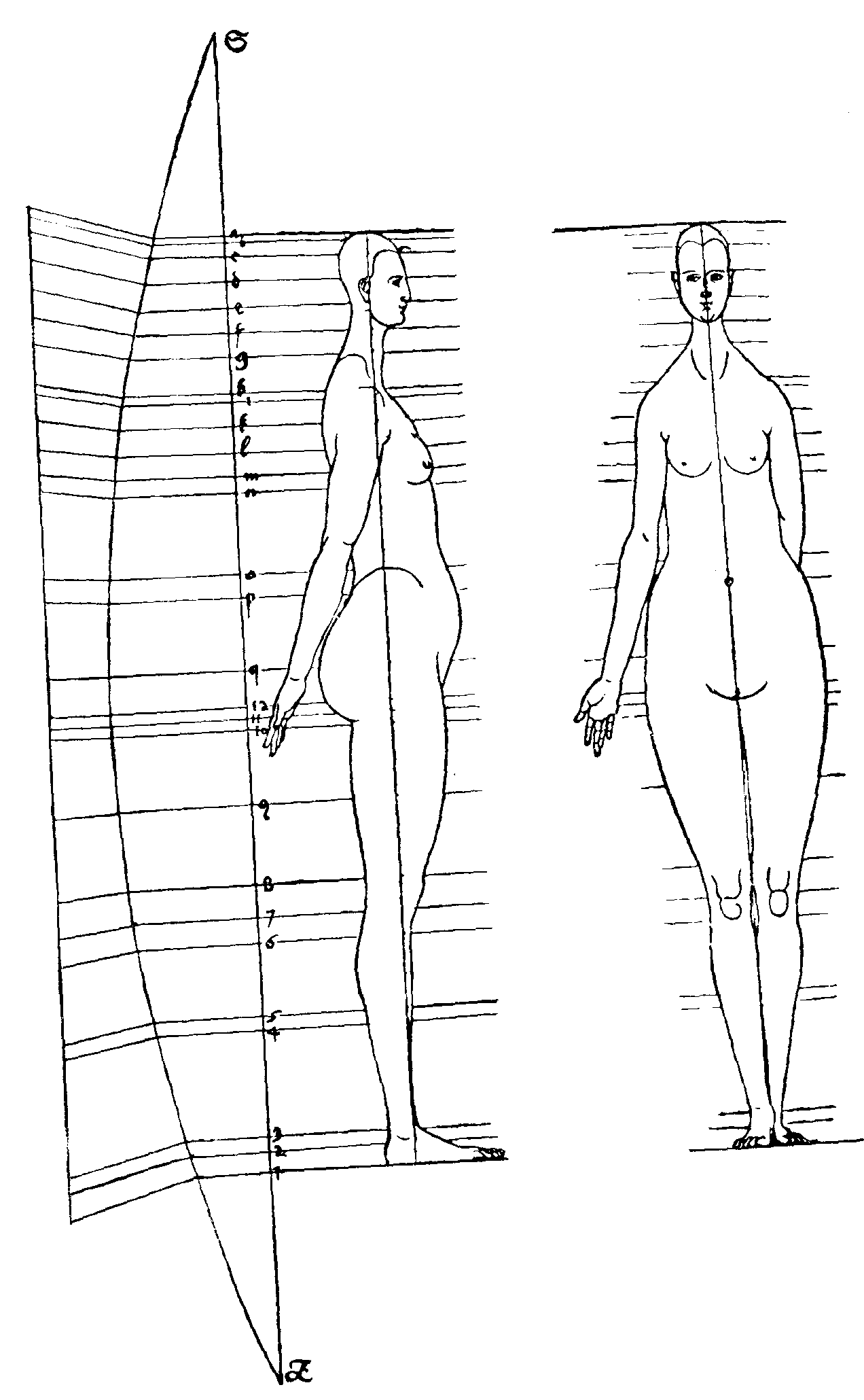 6. Построение женской фигуры при помощи циркуля. Рисунок пером. Дрезден, Публичная библиотека.
