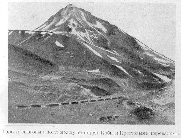 Гора и снеговые поля между станцией Коби и Крестовым перевалом.