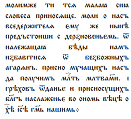 словесами украсив. А также молитвы... похвалы многим святым создав, передал их церкви, так что доселе пользуются ими благоверные и [?]люди,всех просвещая в радости... Так доброчестно и благочестиво прожив, порученное ему стадо успешно окормляя, преставился в вечный... в бесконечную жизнь. Придите же днесь, братия, да восхвалим святителя этого, говоря: «Радуйся, святитель, славны учитель, други... златословесный воссиял нам в Руси выше всех; радуйся тем, что святым и тресветлым учением своим осветил все концы русские; радуйся, что, как солнце, помраченных и темных ты просветил постижением Бога. |