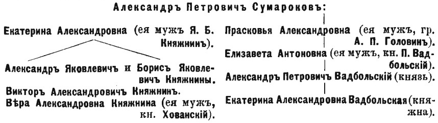 2. Названная личность, родственница Сумарокова, сообщила нам и следующую генеалогическую таблицу: